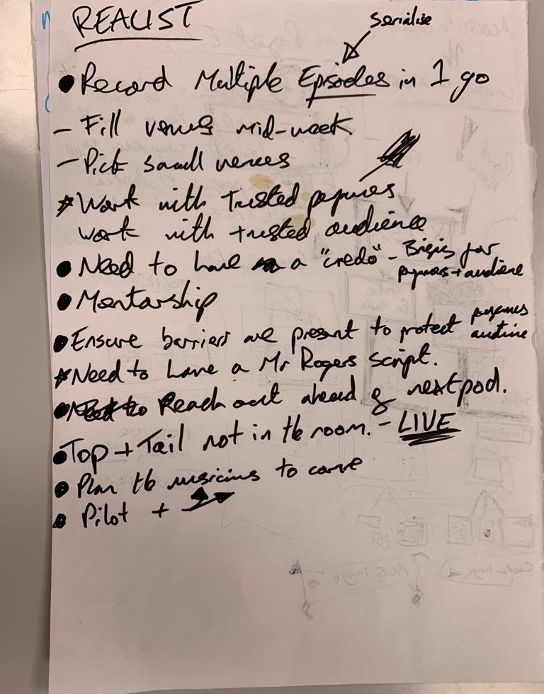 As part of the closing evaluation of this micro project - moving forwards we identified ways in which this podcast endeavor could be honed, sustained, and scaled. The sourcing of small suitable venues on a podcast by podcast basis would not be the most efficient way to scale this into a major project. Instead, a process of batch serialisation would need to take place, with a run of 5-6 half-hour podcasts being captured during each 3-hour live audience recording. With a lineup of 5-6 guests performing in each episode, resulting in 3 months of bi-weekly podcast releases. ...and this is something we're strongly considering! We'll see how the pilot goes down with everyone, but the hunger to keep Song Stories going is riding high with everyone indeed. But for now, this concludes our group micro-project, and I have to say, I'm already feeling very humbled by this refreshing reminder of the power of human-centred design and what can happen when you allow your vision to be molded by needs and the individuals you are targetting your work at - because I really do feel that this project had become something rather interesting as a result.
